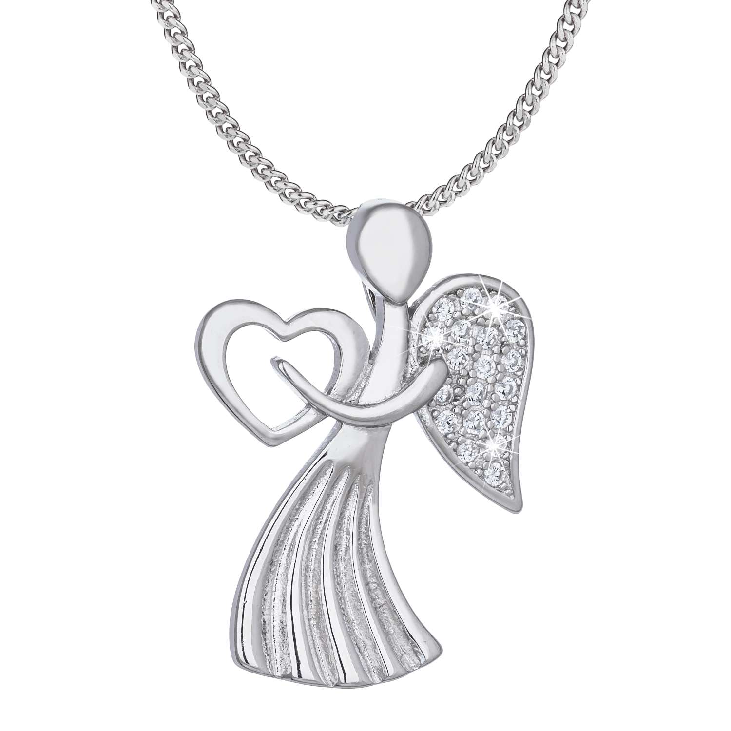 Nabízíme Vám speciální náhrdelník na krk. Sada obsahuje stříbrný přívěsek anděla s bílými zirkony, stříbrný řetízek Pancr a dárkovou krabičku. Šperky jsou rhodiované, ryzost je 925/1000.