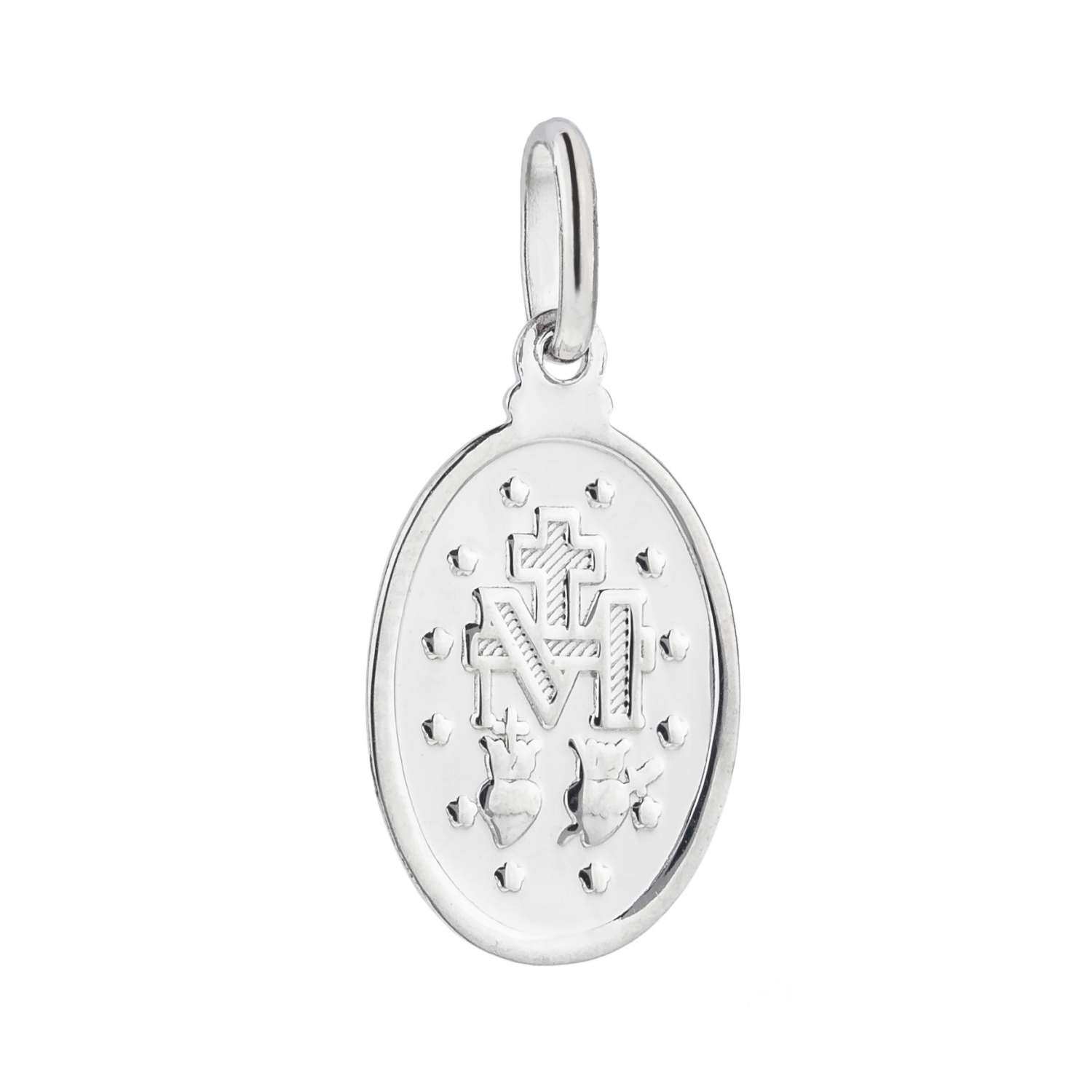 Medailka je vyrobena ze 14 K bílého zlata. Na výšku měří bez očka a poutka 13 mm. S poutkem a očkem měří na výšku 20 mm.